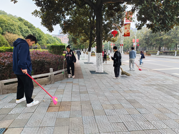 同学们在生活委员的带领下进行本次劳育实践活动。活动过程中同学们有序地完成着所安排的任务,干劲十足。有的同学带着扫帚和簸箕扫着堆积的落叶;有的同学拿着垃圾捡拾器在处理白色垃圾;还有的同学撑着垃圾袋配合着其他人,哪里需要就赶到哪里,配合默契、团结一致。经过同学们一个多小时的努力,绿化区的面貌焕然一新。