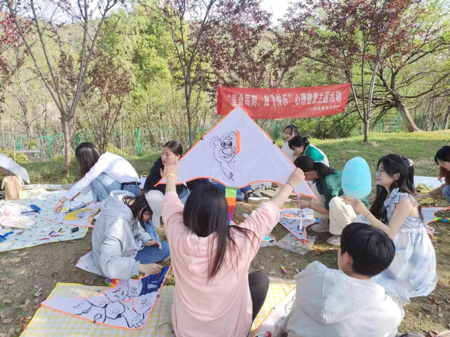 心理活动共分为三个部分:“放飞心情”“旷野炊烟”以及“围坐茶话”。“放飞心情”环节,以风筝为活动载体,组织同学们进行DIY风筝和放风筝比赛,激发了同学们的创作兴趣,锻炼了同学们的动手能力、“旷野炊烟”环节,通过同学们的自助野餐,到场的所有同学充分感受春风与阳光,利用这个机会舒缓开学考后的紧张氛围,使同学们更好的投入到接下来的学习之中、“围坐茶话”环节,通过谈心、小游戏、才艺技能展示等形式,同学们投身到欢快愉悦的氛围里,进一步加强我院同学之间的团结与交流。