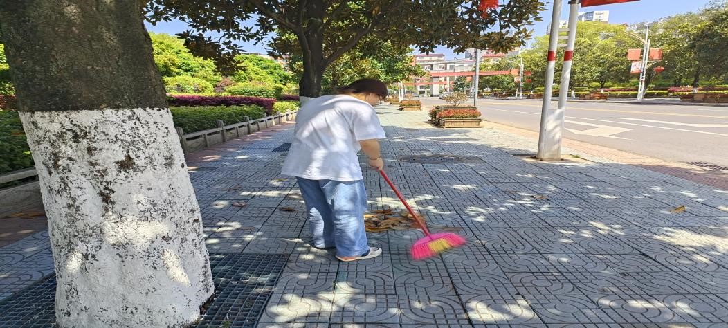 当天下午,同学们提前到达了集合地点,在生活委员的安排下明确了各自的任务。同学们分成了五个小组,有的捡拾绿化带里的废塑料弃物、有的用扫帚打扫路面,有的用簸箕收集垃圾。同学们充分发扬了不怕脏不怕累的劳动精神,顶着烈日打扫着每一个角落。在同学们的通力协作和共同努力下,校园环境焕然一新。