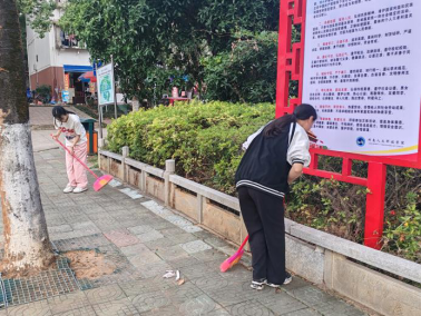 同学们在我院团学会干事的指导下进行本次实践活动。活动人员在规定时间内到达活动场地,分区域与小组进行清扫工作。整个活动过程中同学们一丝不苟,积极热情,仔细打扫每一个角落,不放过任何垃圾。充分彰显了我院学生不怕脏不怕累的劳动精神。同时,小组同学间互帮互助,高效高质完成工作。