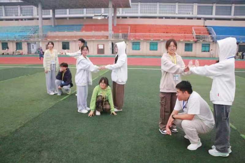 素拓伊始,素拓师带领同学们围绕田径场跑步两圈作为素拓前热身。本次素拓分为“军训篇”和“项目篇”,在素拓师的指导下,团学会成员分为两组分别开展素拓活动。在军训篇中,同学们立正军姿,素拓师讲解素拓规则。在项目篇中,同学们在素拓师的带领下分别展开“大树与松鼠”“链接加速”“吸管传递”三个项目。项目一,同学们两人一组组成大树,其他同学当松鼠。当素拓师喊不同口令时,同学们需要快速组成大树与松鼠的组合,充分考验同学们的临场反应能力。项目二,同学们将手搭靠在前面同学的肩上,互相扯住小腿,成“链条”状前行,先到达终点并保持“链条”状的队伍获胜。项目三,同学们需要通过嘟嘴接力传递一根吸管,锻炼了同学们的团结与行动能力。