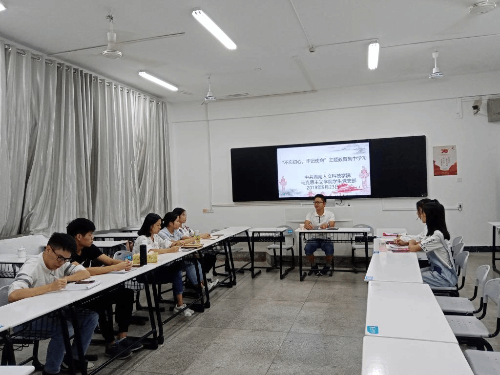 9月24日,马克思主义学院学生党支部在致远楼603组织开展了“不忘初心,牢记使命”主题教育集中学习,主题学习由党支部书记张得才主持,全体学生党员参与。