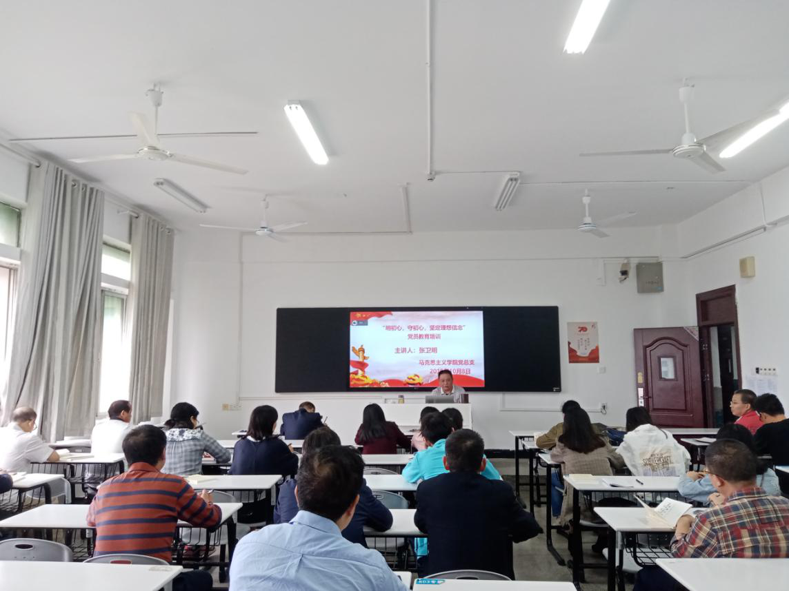10月8日,为进一步加强党员思想教育,不断推进党员思想建设,我院党总支召开了“明初心,守初心,坚定理想信念”党员教育培训会。本次培训会由我院党总支副书记、院长张卫明和党总支委员、教工党支部书记卿孟军博士主讲,我院党总支书记游训龙主持。我院全体党员参加。