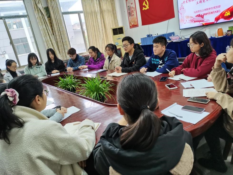 为进一步增强党员政治理论意识,锤炼党员政治品格,4月12日下午三点,我院学生党支部书记张得才在致远楼516教室组织召开“学史明理强党性,砥砺奋进开新局”主题党日活动,学生党支部书记张得才主持,全体学生党员参与。