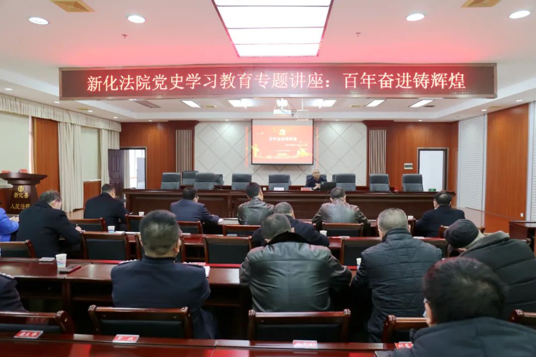 3月12日下午,我院副教授成赛军应新化县人民法院邀请为全体干警作了以《百年奋进铸辉煌》为主题的党史学习报告。