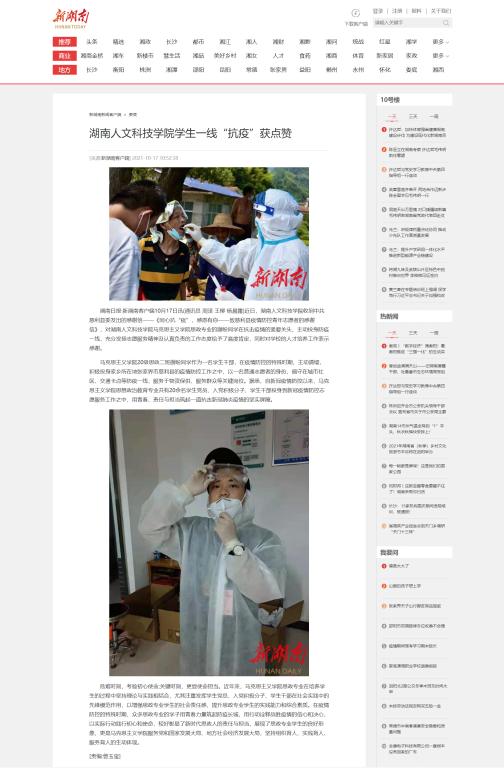 10月17日,湖南日报·新湖南客户端以《beat365英国官网学生一线“抗疫”获点赞》为题报道了我院20级思政二班谢盼等20余名学生积极参与家乡抗疫的事迹。