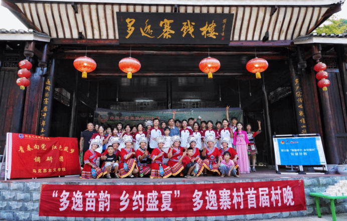 为进一步丰富村民文化生活,鼓励村民们积极参与丰富多彩的文化活动,调研团与多逸寨村联合举办以“多逸苗韵·乡约盛夏”为主题的首届村晚。村晚现场,气氛热烈,欢声笑语不绝于耳,节目精彩纷呈,展示出多逸寨村的非凡魅力。村民们与调研团成员共同沉浸在欢乐的氛围中,拉近了与彼此的距离,让成员成为了村民的知心人。此次村晚的成功举办,不仅为当地的传统文化、民俗艺术提供了展示的舞台,进一步强化了村民与调研团成员的情感联系,同时有助于提高村民文化生活质量、提升多依寨村文化传播力与影响力。