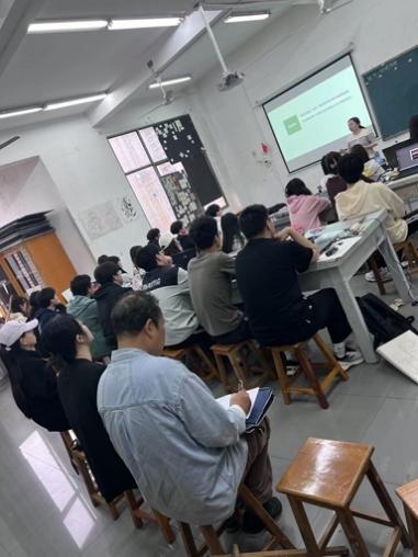 4月30日上午第2节课,视觉传达教研室夏菲老师主讲的《中国传统配色及运用》院级公开课在逸美楼510教室举行。杨竟成副教授为代表的学校督导团及视觉传达专业,数字媒体艺术专业部分教师参与了此次听评课活动。
