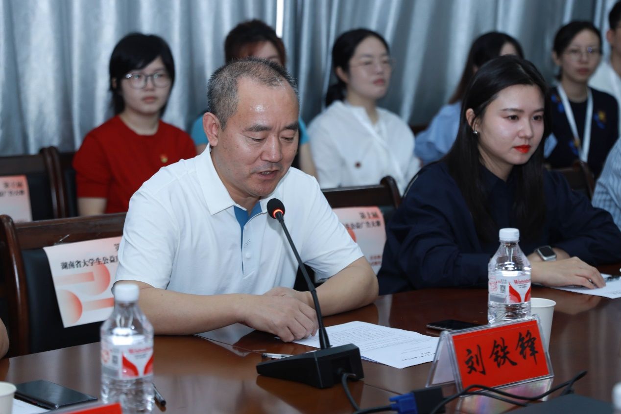 会议伊始,由学校党委委员、副校长刘铁锋代表全校师生员工致辞。他对本次莅临会议的各位领导和评委表示了热烈的欢迎,对湖南省第十届大学生公益广告大赛评审会的成功举办表示了热烈的祝贺,同时,对学校的基本情况进行了介绍,他表示长期以来,学校紧紧围绕人才培养中心任务,坚持以学科竞赛为引领,着力培养知识、能力、素质协调发展的创新型人才。对于此次大赛的评审工作,他强调作品评选是成功办赛的关键环节,希望各位评委围绕大赛主题,选取一批思想性、艺术性、观赏性相统一的优质作品,实现“评选一个、宣传一个、影响一片”的示范效应。