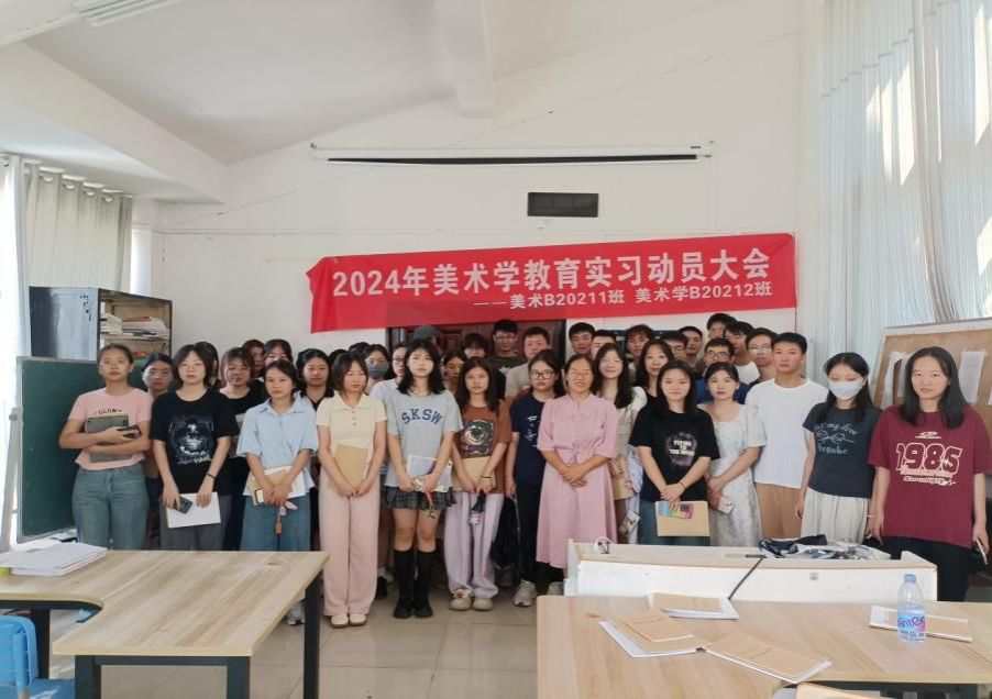 9月11日上午,美术学专业在逸美楼组织召开2021级教育实习动员会。美术学教研室主任彭波、班主任邹夫仁和实习带队老师崔宝华出席,2021级全体学生参会。