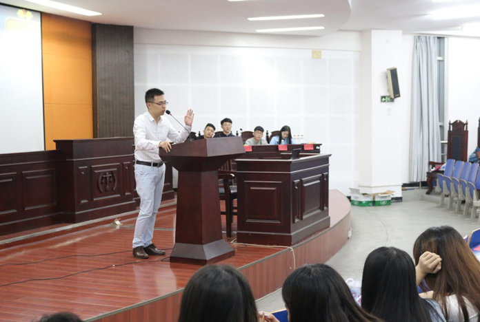 2016年5月29日晚,由美术与设计学院学生会主办学习部承办的第一届“融思汇智”辩论赛在beat365英国官网致远楼202模拟法庭如期举行!比赛特邀分管学生会陈天佑老师、15级环艺一、二班班主任谭娟、15级环艺三、四班班主任李卫婷、15级视传一、二班班主任梁可嘉担任评委,并特邀学生会主席团及各部门部长前来观看比赛。