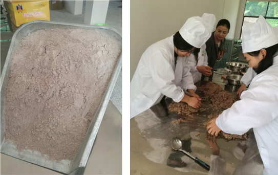 本次参加考察的主要人员有视觉传达教研室主任童玲、食品加工专业教研室主任谢晶以及农生院及美设院的部分专业教师和同学们。10日上午,老师和同学们一起在生产基地探讨了关于子的选材、加工、制作等程序,下午,老师们将子加工成特制的粗粮饼干,学生们进行了认真的学习。