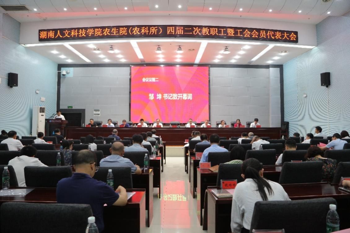 6月21日上午,农业与生物技术学院(娄底市农业科学研究所)在图书馆二报告厅举行四届二次教职工暨工会会员代表大会。本次大会旨在全面总结院(所)过去一年的工作成绩,部署未来一年的工作任务,同时加强教职工的民主参与和民主监督,推动院(所)各项事业的持续健康发展。大会分别由学院党总支书记邹坤、副书记王东光主持,全体教职工参加大会。