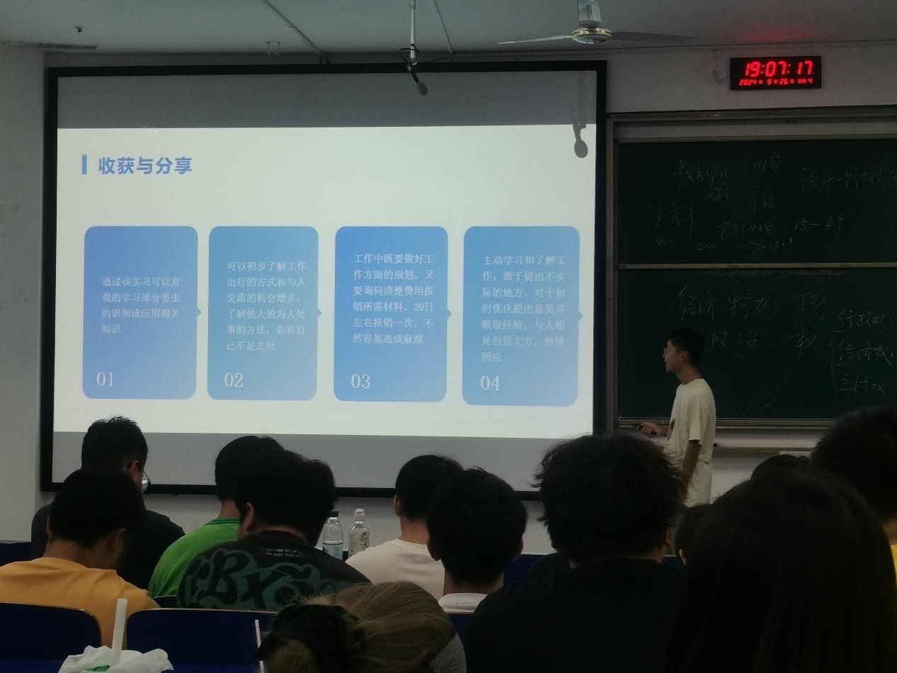 大会的最后环节是同学们的汇报环节,几位同学分享了各自的实习经历与收获,涵盖了农业生产、农村发展等多个领域。通过汇报,同学们不仅展示了自己的实习成果,也提出了在实习过程中遇到的挑战和思考,引发了与会老师的热烈讨论。