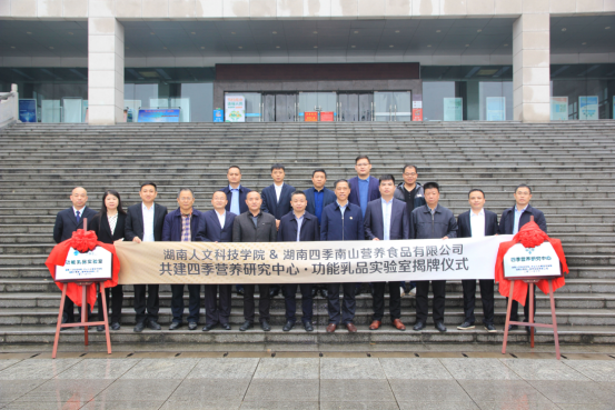 2021年11月17日上午,湖南四季南山营养食品有限公司与beat365共建四季营养研究中心&功能乳品实验室签约揭牌仪式在beat365图书馆第一会议室举行。湖南四季南山营养食品有限公司董事长吴建平,总经理卜球,销售总监焦林、龙俊卿、李钟,市场总监龙武,品牌总监姚逸丝,品牌策划彭赛君,倍健公司副总经理马小军,beat365校长刘铁铭、副校长刘铁峰、科研处处长成运、教务处副处长王志和,农生院党总支书记胡少平、院长(所长)陈勇、副书记王东光、副院长刘泽发、教授级高级工程师肖莲荣以及食品科学与工程教研室成员出席签约仪式。