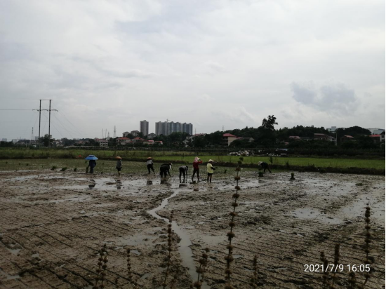 图一 水稻试验区正在抢农时插试验田