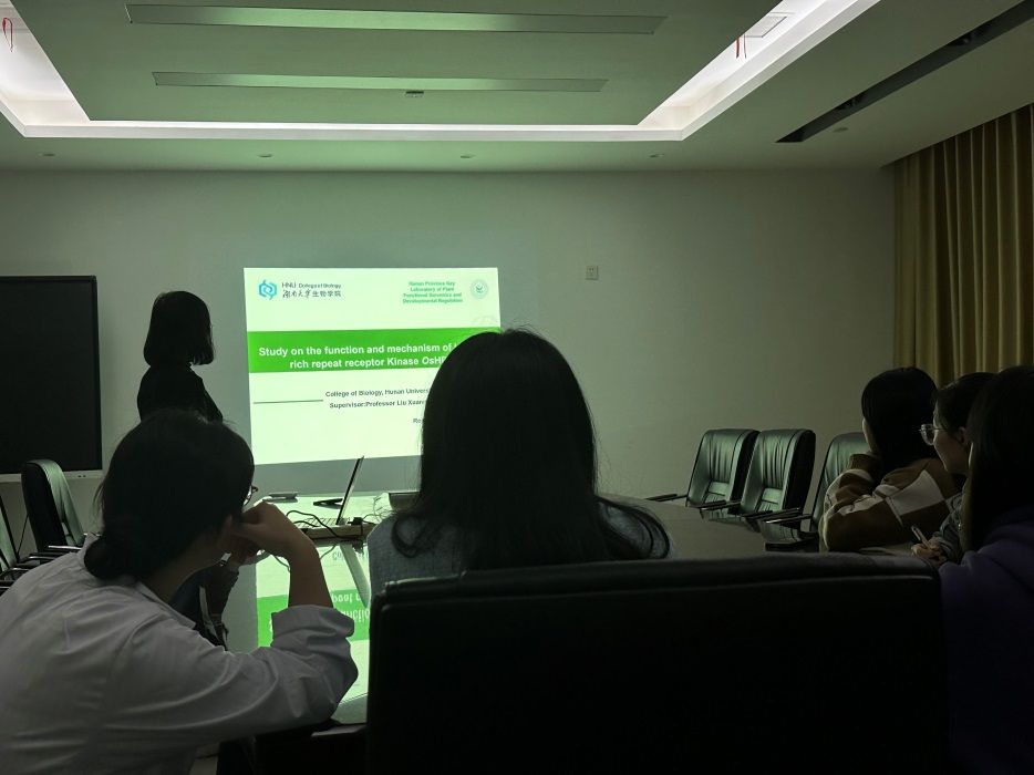 2023年10月28日上午14:30,湖南人文科学院农生院王艳博士于湖南大学生物学院会议室做了题为“水稻过氧化氢酶受体LRR5调控盐胁迫响应的生化机制”的学术报告,湖南大学生物学院老师及水稻课师组学生均参与了该会议。