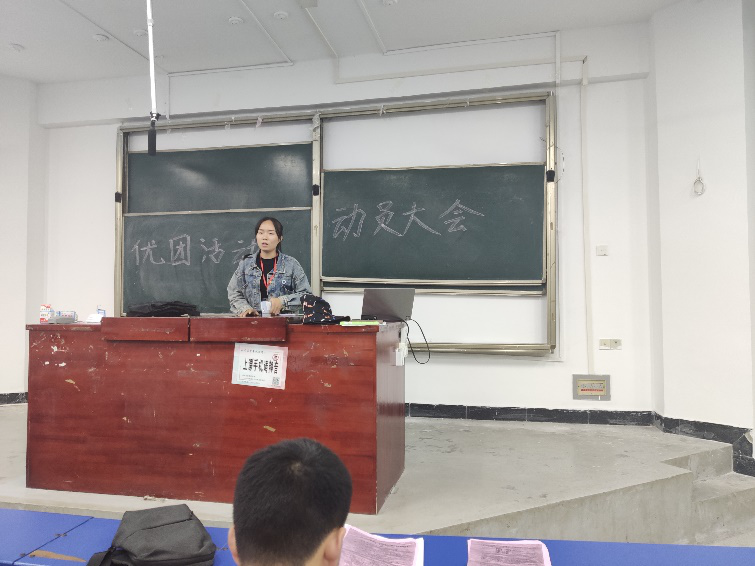 由主持人宣布会议的开始,漆佳文和陈诗雨讲解了此次会议,介绍了本次会议背景,并要求学生会干事通过微信、微博、QQ等网络媒体积极宣传本次优团活动,讲解了优团活动的流程和工作人员的安排。