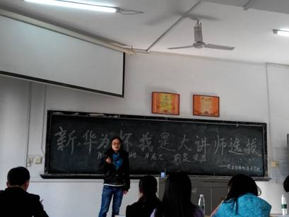 此次比赛采用的是选手自由上台发表五到六分钟的即兴演讲。比赛过程中选手踊跃上台,积极发言,选手们表情专注,言辞恳切,一个个激情地向观众和评委们讲述了自己的理想和梦,现场气氛甚是活跃。同时台下听众认真听讲,井然有序。最后,彭洪老师对新华为培训学校及此次比赛的目的做了详细介绍,在同学们热烈的掌声中比赛圆满结束。