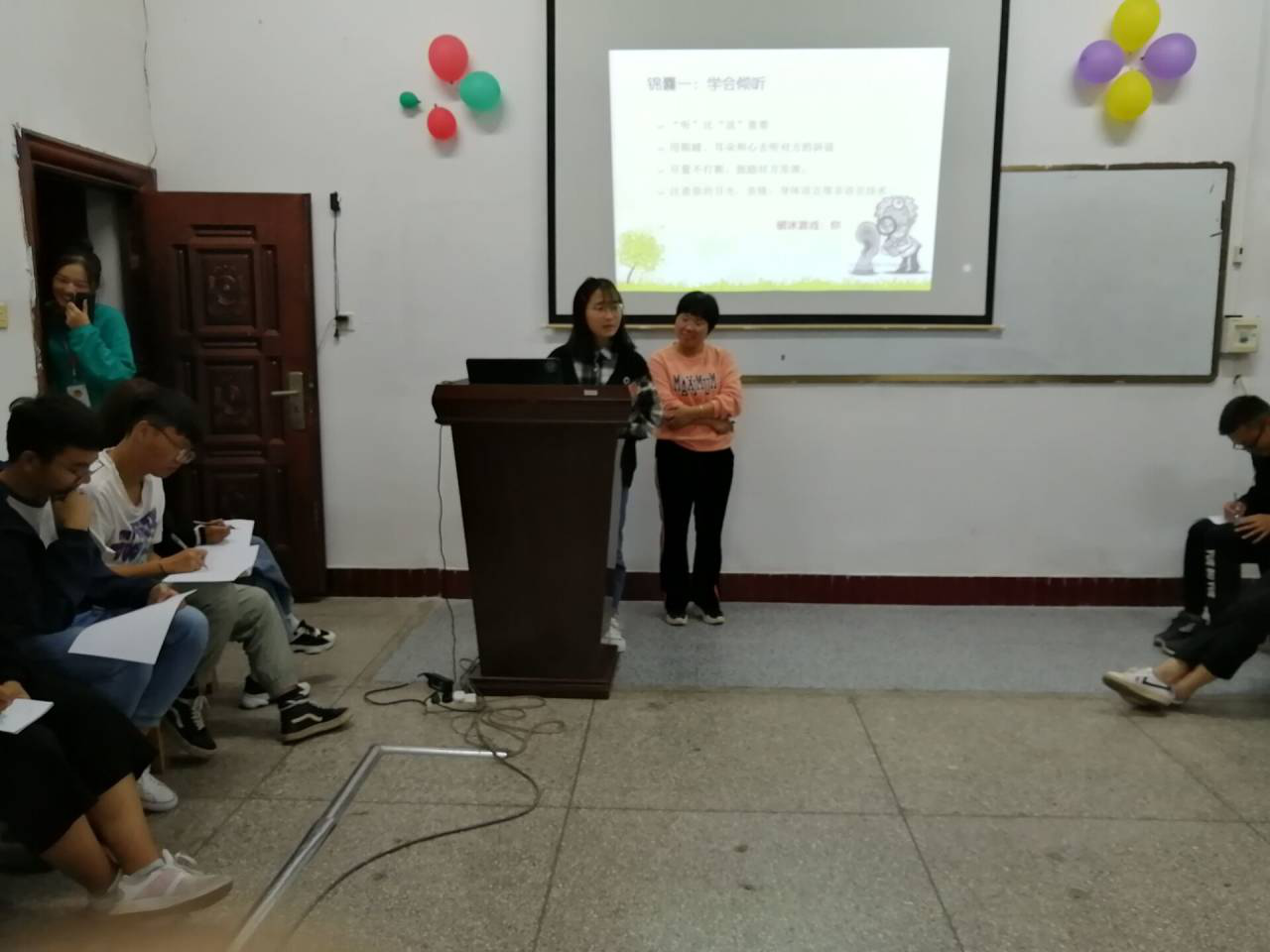首先一个开场游戏——有缘相识(契合卡纸)让在座的同学们互相熟悉对方,营造融洽气氛。会议主要强调了如何做好一名阳光的心理使者,了解心理委员的角色定位、工作职责、工作原则和工作技巧。聂恒老师就心理委员的隐形角色“心理隐患排雷兵”,“心理朋辈辅导员”进行深入讲解,并要求各级心委定期向班主任和辅导员汇报班级中可能发生的心理危机事件,最大程度配合辅导员工作。