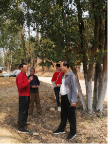 在该村农民学员谢国贤的柚子树园,50余亩柚林青翠欲滴,新吐露的新芽竞相齐发,一片欣欣向荣的景象,正是春季剪枝的大好时机。服务团队一行认真察看果树长势情况以后,康林峰对种植户提出的疑难问题进行了答疑解惑,就柚子树的种植要点、难点、修剪、水肥管理、病虫害的认识防治给农民兄弟做了耐心细致地讲解,并手把手进行春季剪枝指导。