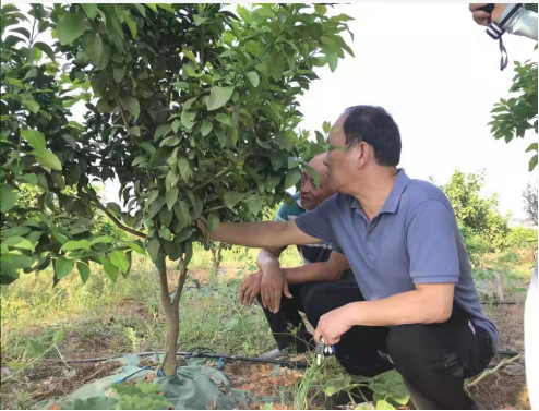 8月31号下午,农生院副院长(农科所副所长)、市农学会副理事长、推广研究员康林峰率技术团队成员冒着酷暑赴涟源祥兴农业科技有限公司进行金秋砂糖橘大棚育苗与幼树整形修剪技术指导。