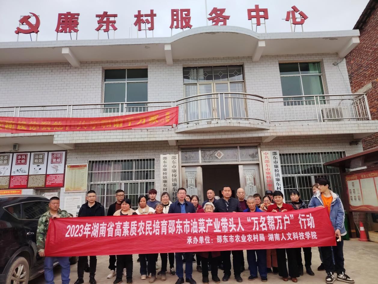 3月21日-22日,农生院和邵东市农业农村局共同组织2023年湖南省高素质农民培育邵东市油菜产业带头人“万名帮万户”培训。邵东市农业农村局科教股股长曾纪群、农生院罗育才、李红建,培训班班主任彭日民组成的专家服务团队,以及邵东市油菜产业带头人培训班的部分优秀学员和从事油菜种植的小农户共80多人参加了培训行动。