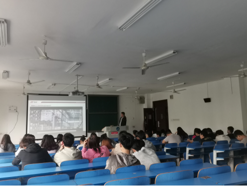 招聘会现场两家公司的工作人员为同学们介绍了公司的发展概况、企业文化、工作岗位以及薪酬福利待遇等。同学们积极到场且十分认真地聆听了此次会议,讲解人员鼓励学生积极提问有关公司的一些细节。