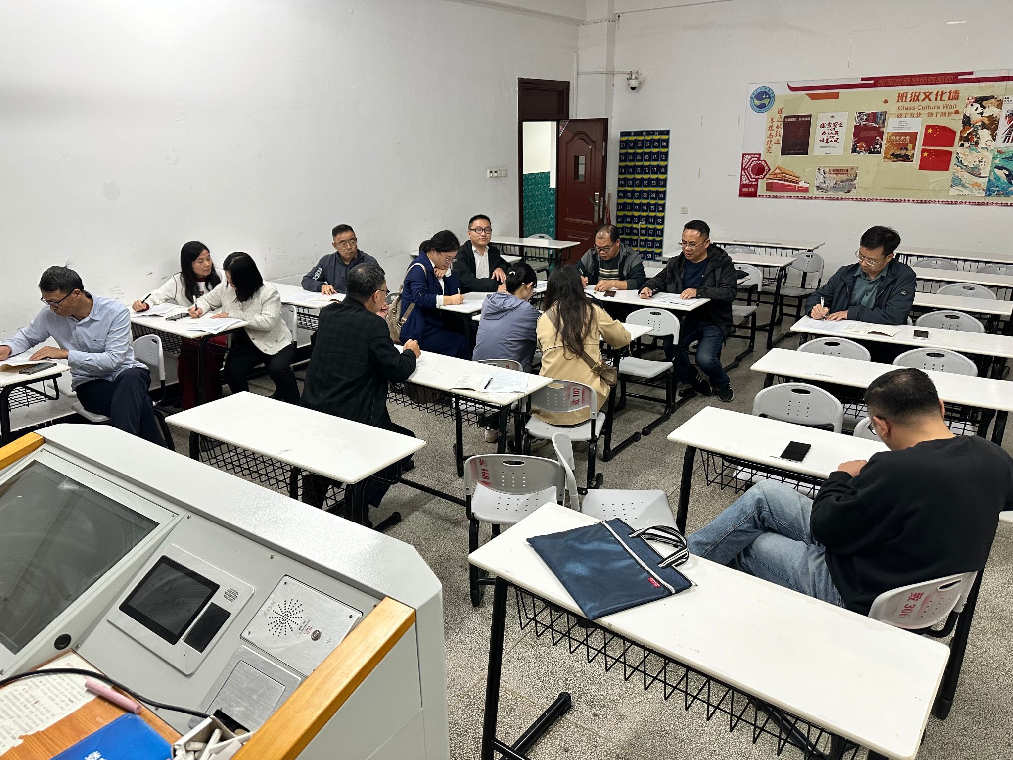 课后,在致远楼109教室成功举办了评课研讨活动。邹坤对本次课程思政示范课表示了高度认可,认为教学内容充分体现思想性、政治性和时代性,同时思政元素与知识点的结合紧密,有效地将价值引导、能力塑造和知识传授融为一体。在研讨会上,向国红指出,刘泽发博士的课程思政示范课堂和院级公开课的准备工作充分,教学内容掌握得非常熟练,并且能够将个人的科研成果融入授课之中,充分展现了其教学的创新性、高阶性和挑战性;在授课过程中,他注重挖掘思政素材,并巧妙且有机地将教学内容与思政元素结合起来,真正实现了润物细无声的效果。随后,老师们进行了深入的交流和讨论,普遍认为通过观摩这次公开课,对深化课程思政的理解、加强课程建设以及提升教学水平具有极大的启发作用,收获颇丰。