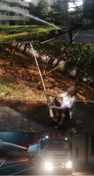 “千里无云、万里无雨”是暑期天气的常态。园林绿化实训中心统一部署,采取“水车+消防水枪”相结合的抗旱方式进行。为了避开正午的酷暑,早上6点,天刚刚亮,老师们已经奋战在抗旱一线,最晚的时候晚上24时仍然坚守在战斗前沿。在抗旱主战场,中心负责人彭日民老师手拿高压消防水枪,战斗姿势十足,看着清澈的水流滋润着花草树木,仿佛流淌在自己的心田,他会心地笑了。有的老师连续数晚跟酒水车喷洒作业到晚上12时,兢兢业业、毫无怨言。正是因为有这群日夜守护校园绿色的园林人,整个校园才会绿意盎然、生机勃发。
