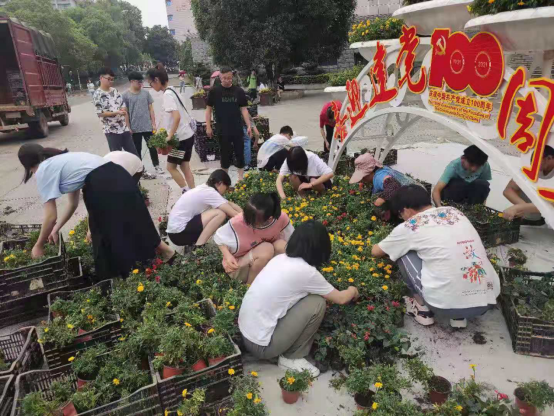 6月19日,为庆祝党的100周岁生日,我院园林绿化实训中心和园艺教研室共同组织19级园艺一班、二班学生70多人在学校主校区开展喜迎建党100周年花坛配植实践教学活动。