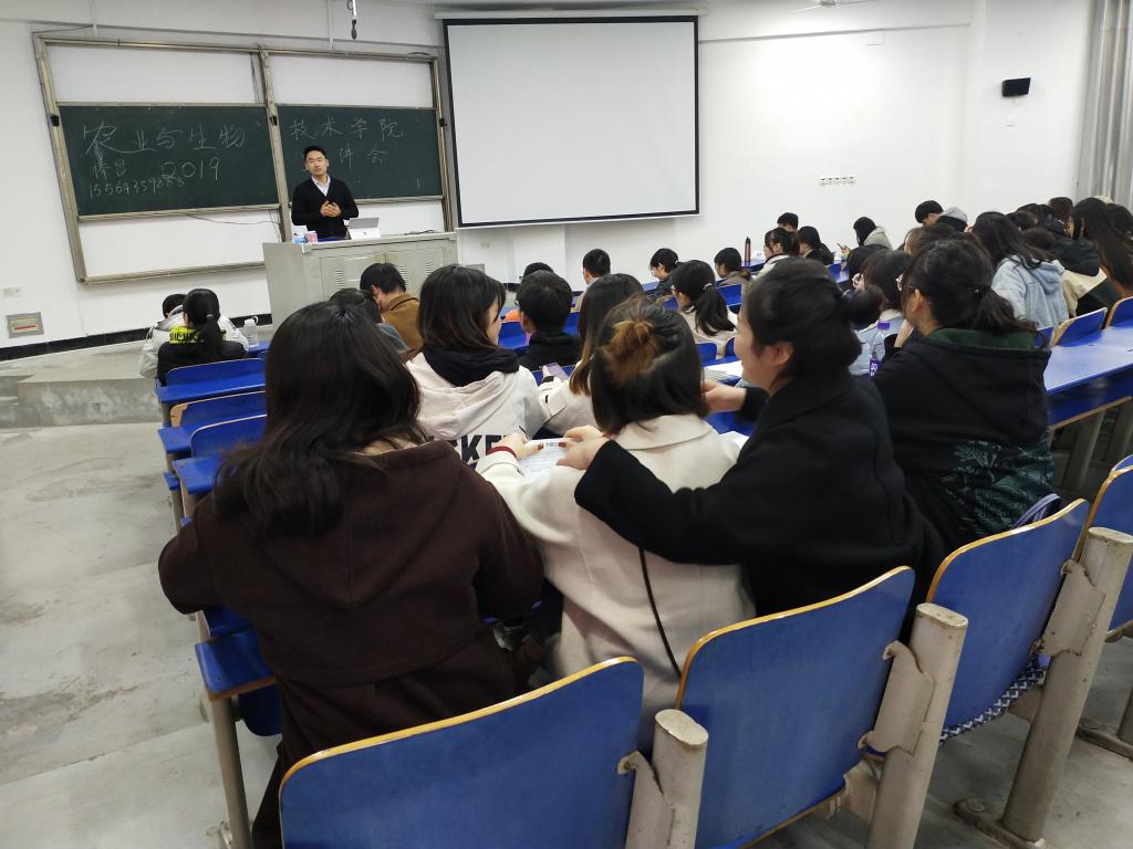 12月10日下午,新希望六和股份有限公司一行到我农业与生物技术学院进行招聘宣讲,本次宣讲会由公司人事负责人李博主持,我院16级所有在校毕业生150多人参加了本场招聘会, 17级100多人参加了就业体验。