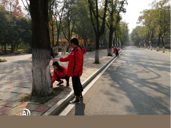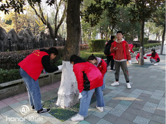 图三 学子们为东珠大道行道树刷白
