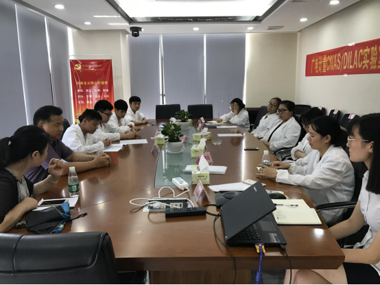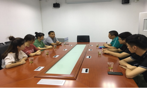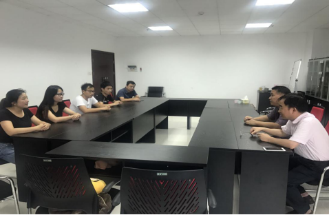 2018年8月10日,我院赵佑柏老师和肖莲荣老师代表beat365专程到长沙广电计量公司看望实习生。当天下午三点左右,老师们顶着炎炎夏日赶到公司同公司的微生物室主管李丰、人事部王亮华以及当天上班的八位实习生(由于公司评审,当天只有8位同学上班:理化实验室4人,有机实验室2人:张丽外出参加项目比赛、样管组刘翰博、采购组郎昀。)相聚于长沙广电计量公司的会议室畅谈。谈话中涉及到老师们对实习生们的关怀和期盼、公司对是实习生的负责及热情、以及各位实习生们对自己这段时间工作的总结等内容。