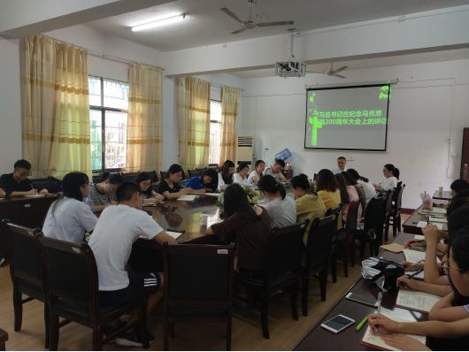 王书记从五个方面介绍了习总书记的讲话精神:第一是习总书记介绍了马克思主义的真理;第二是习总书记高度评价了马克思主义。马克思的一生,是胸怀崇高理想、为人类解放不懈奋斗的一生。是不畏艰难险阻、为追求真理而勇攀思想高峰的一生。是为推翻旧世界、建立新世界而不息战斗的一生。第三是习总书记对马克思理论的评价。马克思主义是科学的理论、是人民的理论、是实践的理论、是不断发展的开放的理论。第四是马克思主义在中国的影响。第五是中国共产党人如何学习与实践马克思主义。