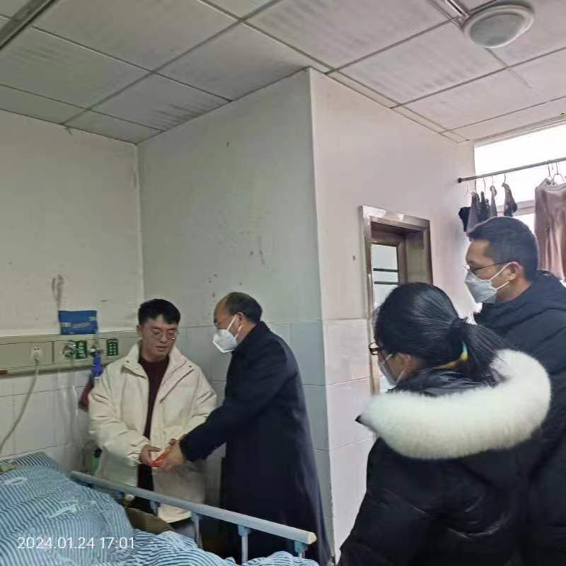 据悉,卓同学的母亲因突发疾病住院治疗,给本不富裕的学生家庭带来了沉重一击。数金院党总支陈国华书记、李军成院长得知这一情况后,积极组织院全体师生进行爱心募捐并一同前往医院探望学生的母亲,表达关心和支持。在探望过程中,教师们详细了解学生母亲的病情和治疗情况,并鼓励卓同学要保持乐观的心态,要敢于战胜困难,艰苦奋斗。卓文骞及家长对学院领导以及师生的关心和慰问表示衷心感谢,并表示一定积极面对,战胜病魔。言语谆谆见真情,师生情谊心连心。