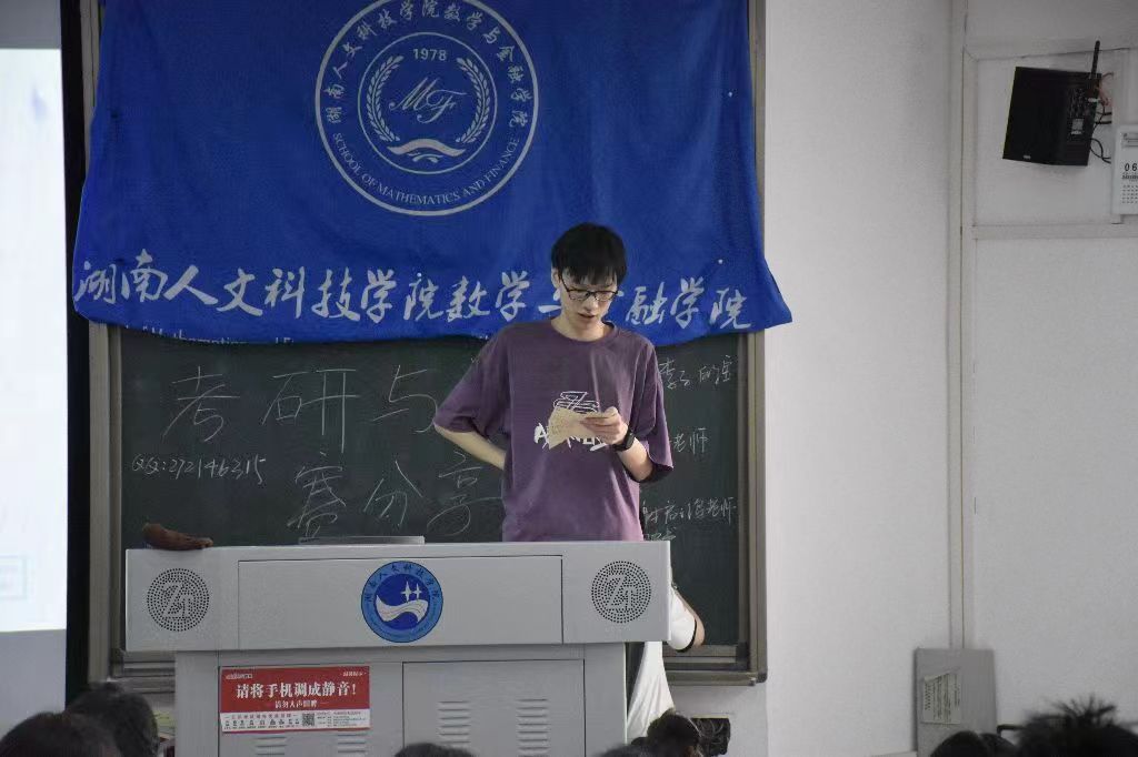邱巧、周美程两位同学主要从数学竞赛的备赛准备、比赛注意事项、赛后总结分享了自己的参赛经历和心得体会。丁格、刘逵宇、刘丹、唐凤、文佳乐五位同学分别通过线下与在线上方式分享了自己的备考经验和“考研妙招”。吴斯对数学竞赛和考研的重要性进行了强调,同时鼓励大家积极参加各项比赛。