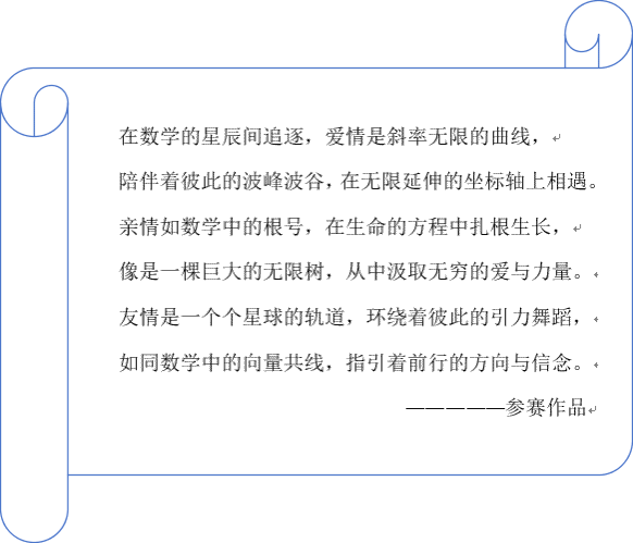 本次活动的开展意在让同学们在将数学与诗句的融合中、在理性和感性的碰撞中,品味数学的无尽浪漫,感受数学的无穷魅力,提高数学学习兴趣。(一审:吴斯;二审:龙志文;三审:李军成)