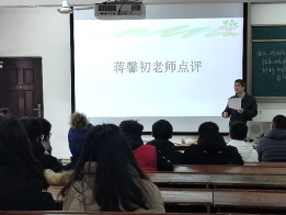 赛后,蒋馨初老师对各参赛选手的表现进行了点评。蒋老师在充分肯定各参赛选手表现的同时,从教学方法和手段、教学语言、教态、板书等环节指出了每位同学存在的不足,要求同学们上课要更富有激情和感染力,努力营造积极活跃的课堂气氛,提高学生的参与度。