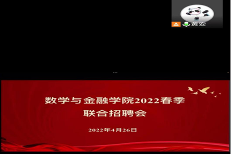 为解决疫情期间困扰学生的就业难题,实现高校与企业的良性互动,形成实习、就业紧密衔接,进一步提升毕业生就业质量,实现优质就业。4月26日下午,数学与金融学院联合玉潭学校、湖南新凯科技、海亮教育、深圳点宽公司、顿开教育等8家企业在腾讯会议平台上召开了2022年春季联合招聘会。