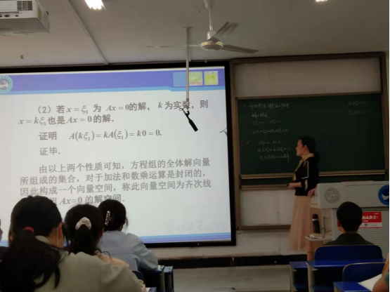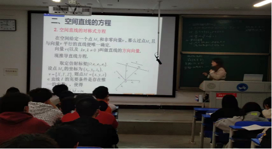 4月29号上午,刘珊君老师在致远楼409上了公开课,课堂内容《空间直线方程》,先复习了平面方程,在引出空间直线方程,然后再举例说明如何求空间直线方程,整堂课课程设计合理 ,思路清晰,板书工整,与学生互动频繁。5月5号上午,王立胜老师在致远楼501就线性代数中的“线性方程组解的结构”上了公共数学教研室公开课,校督导团和本教研室成员参与了听课活动。