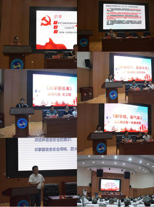 9月15日晚,数学与金融学院在匠成楼举行了2022级生开学典礼暨入学教育大会。全体院领导、新生班主任、部分教师及22级全体新生参加了大会会议由党总支副书记刘晔主持。