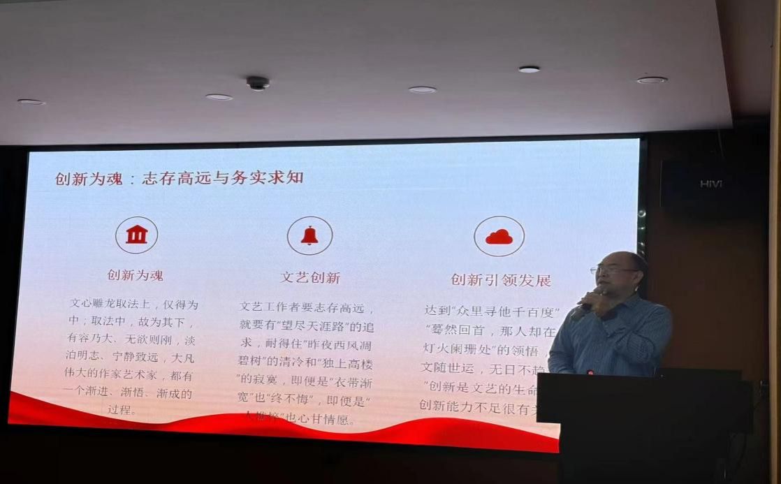 党课由数学与金融学院党总支书记陈国华主讲,以“深入学习习近平文化思想,传承与弘扬中华优秀传统文化”为主题展开。陈国华首先阐述了习近平文化思想形成的时代背景、丰富内涵及其在党和国家整体战略布局中的核心地位,强调文化是一个国家、一个民族的灵魂,关乎民族的凝聚力与向心力,关乎国家的长远发展与繁荣稳定。