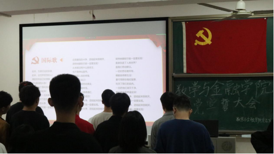 为进一步提升学生党员教育成效,筑牢信仰之基,补足精神之钙,把稳思想之舵。5月24日下午,数学与金融学院在学而楼209教室举行了2022年党员教育大会暨新党员入党宣誓仪式。学院部分党总支委员、学生党支部书记及全体学生党员参加了大会