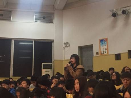 在动员大会上,学生纷纷就“挑战杯”有关问题进行了提问,在座的各位领导老师进行逐一解答,现场气氛火烈。