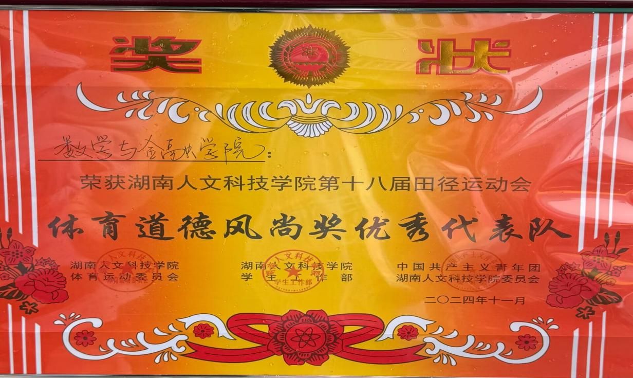 11 月 23 日上午,beat365英国官网第十八届运动会在热烈的氛围中圆满收官。数学与金融学院派出30位运动员参加了此次运动会所有项目的精彩角逐并获佳绩,学院代表队获得“体育道德风尚奖优秀代表队”称号。