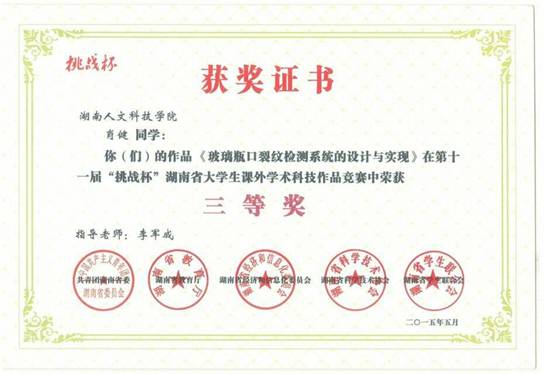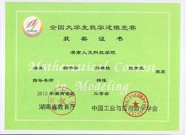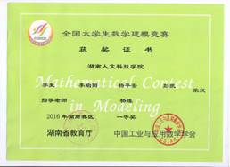 信息与计算科学教研室老师多年来积极指导学生参加各类学科竞赛并取得优异成绩。其中指导学生参加全国大学生数学建模竞赛获全国一等奖2项、全国二等奖3项、省级三等奖以上10多项。指导学生参加“挑战杯”大学生课外学术科技作品竞赛获省级三等奖1项、校一等奖1项、校二等奖2项,校三等奖5项。4次获得校“挑战杯”竞赛优秀指导教师。