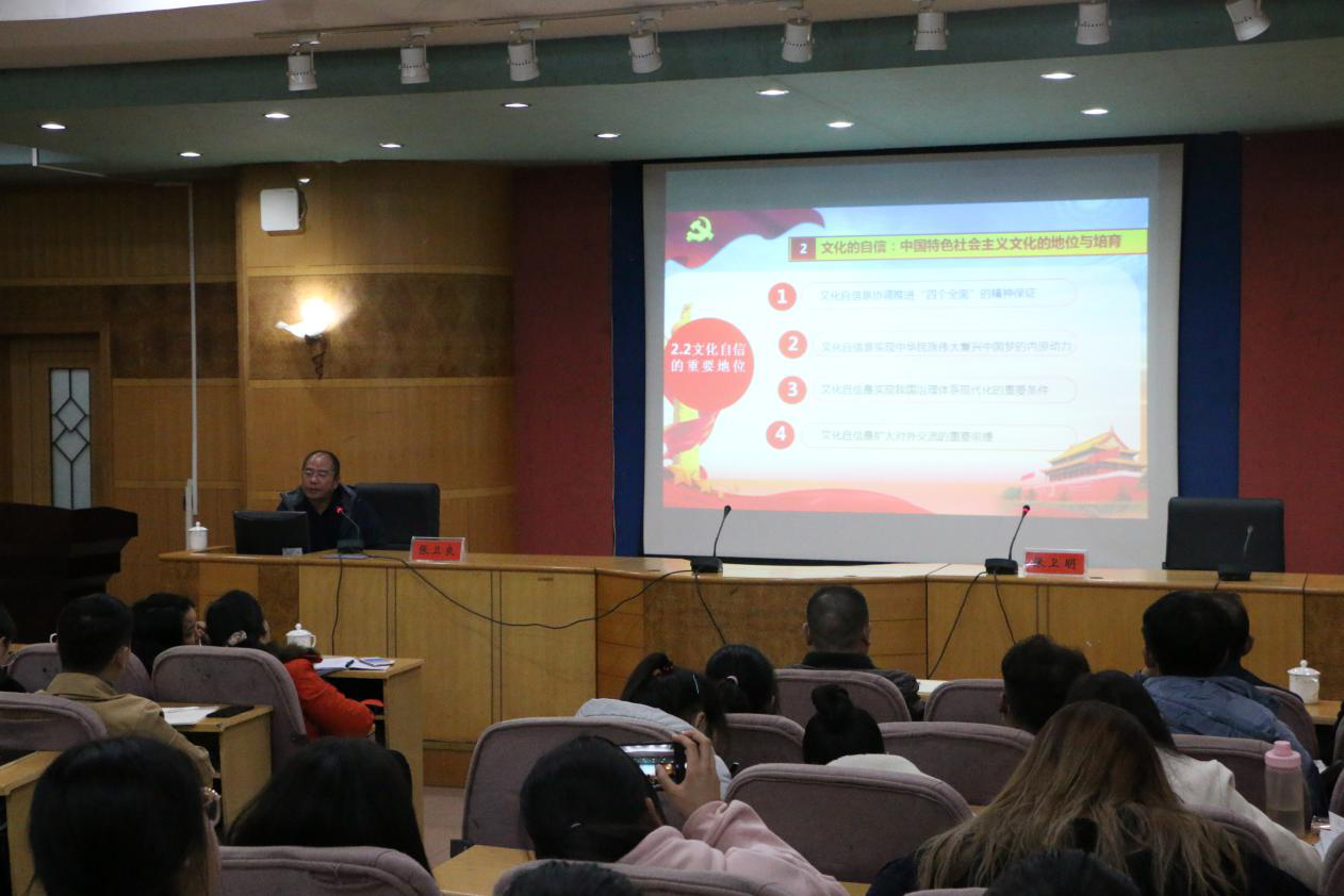 12月3日晚,中南大学马克思主义学院张卫良教授、博士生导师应我院邀请,在学校养根楼多媒体报告厅以“习近平关于文化自信的重要性”为主题,为我院学生开展了一场精彩的学术讲座。讲座由我院院长张卫明教授主持,党总支书记游训龙、副院长杨国辉、袁承蔚博士、周玉文博士等老师出席,我院18级、19级学生及青马工程班全体学员参加。