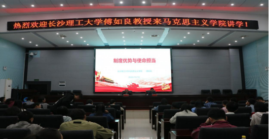10月30日上午,长沙理工大学傅如良教授应邀在图书馆二会议室为我院作了题为“制度优势与使命担当”的讲座。讲座由我院党总支书记游训龙教授主持,副院长杨国辉副教授、周浩博士等老师以及20级全体同学参加。