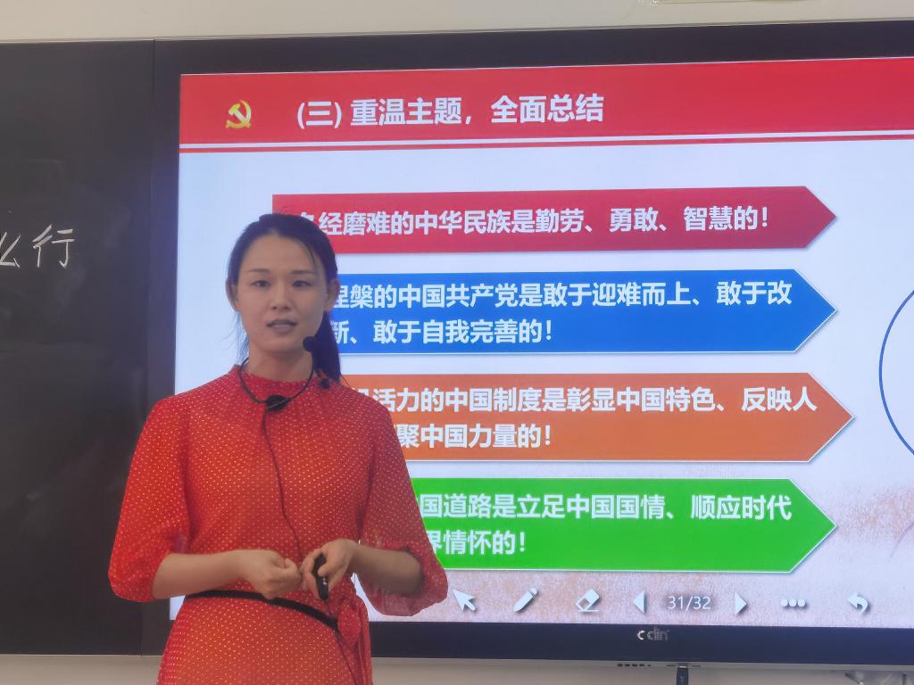 何娟老师以“百年风云激荡,中国为什么行”为主题,采用讲课说课相结合的方式,简明扼要地概述了1840年以来中华民族的崛起历程。引导学生树立正确的三观,以积极的心态求学志业;引导学生培养时代使命感和历史责任感;更重要的是体现着人生的价值与追求,进而引发学生提升精神境界,塑造家国情怀,强化社会责任,弘扬担当精神。